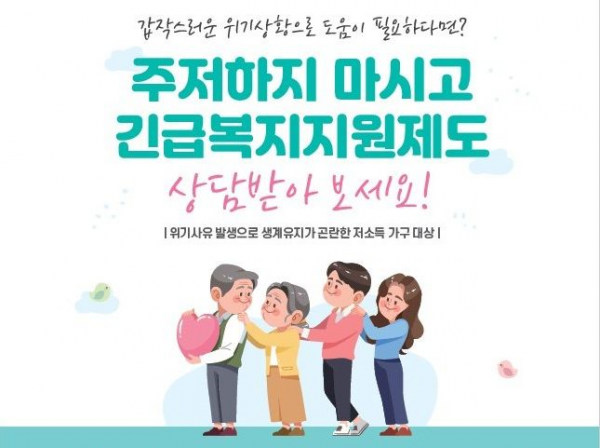 ‘긴급복지지원제도’는 사망, 실직, 질병 등 갑작스러운 위기 발생으로 생계유지가 곤란한 저소득층에게 지원하는 제도다.