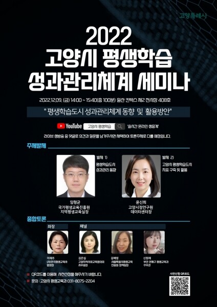 고양시 평생학습 성과를 공유하고 고양시민과 전국 평생학습 관계자와의 소통과 공론의 장으로 열리는 이번 세미나는 유튜브 ‘고양시 평생학습’ 채널에서 실시간으로 온라인 생중계될 예정이다.