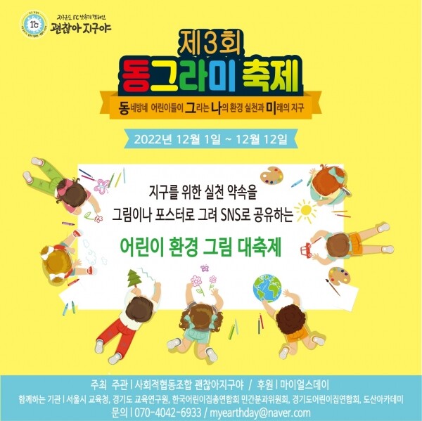 [뉴스서울] 경기도교육연구원은 28일 환경부 인증 사회적협동조합인 ‘괜찮아지구야’가 주최·주관한 기후변화 위기 문제 해결을 위한 ‘제3회 동그라미축제’를 후원하고 지역아동센터 아이들에게 축제 참여를 독려했다.