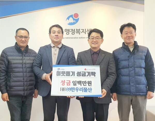 이에 대해 구정서 읍장은 “따뜻한 온기를 전해주신 ㈜한우리물산에 진심으로 감사드린다”며 “귀하게 보내주신 성금은 지역의 취약계층이 따뜻한 겨울을 보낼 수 있도록 소중하게 잘 전달하겠다”고 말했다.