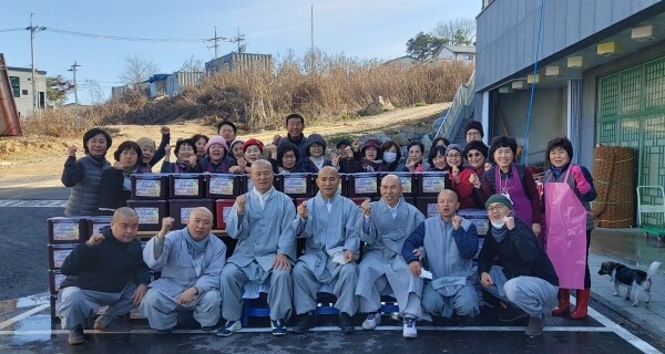 ▲ 대한불교조계종 연운사·자비나눔공동체 희망드림, 김장김치 700kg 양촌읍 저소득 소외계층에 전달