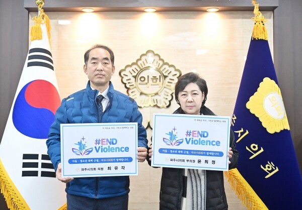 최유각 의원은 “미래의 주인공인 아이들이 위험한 길에 내몰리지 않길 바라는 소망을 담아 챌린지에 동참했다”며“모든 폭력으로부터 우리 아이들을 지킬 수 있도록 파주시의회에서도 아동 폭력 예방에 많은 관심을 기울이겠다”고 말했다.