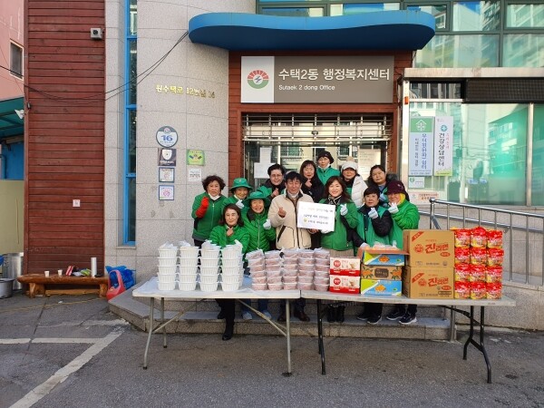 김현수 수택2동장은 “갑자기 추워진 날씨에도 저소득층 세대를 위해 갈비탕 등을 준비해 주신 이혜순 새마을부녀회장님과 회원분들께 감사드리며 이런 따듯한 마음이 이웃들에게 전달되어 행복한 겨울을 보낼 수 있길 바란다”고 전했다.