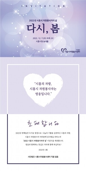 임병택 시흥시자원봉사센터 이사장은 “오는 7일에 개최되는 행사는 시흥시 자원봉사자라면 누구든 참석이 가능한 만큼, 3년 만에 대면으로 개최되는 자원봉사자의 날 기념식에 자원봉사자 여러분의 많은 참여를 바란다”고 당부했다.