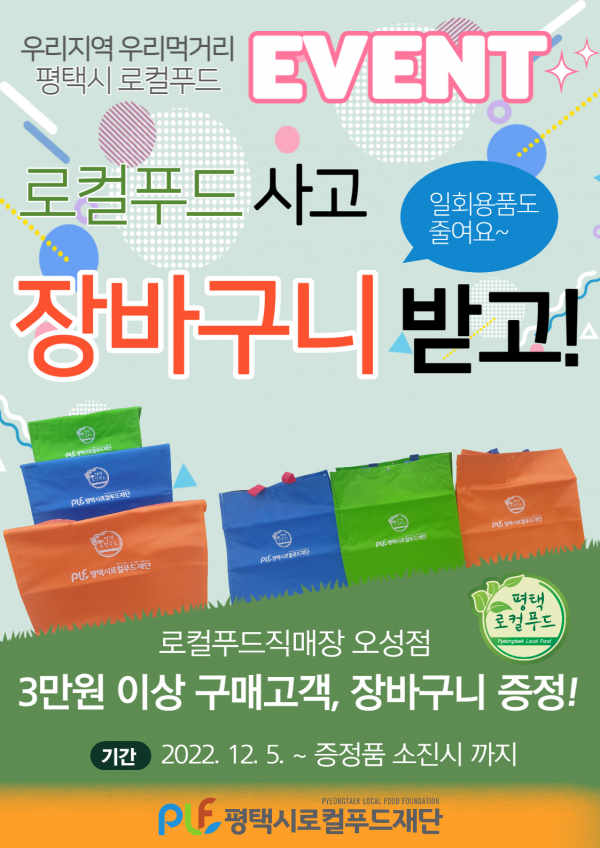 이번 행사는 오성점에서 3만원 이상 구매고객에게 장바구니를 증정하는 이벤트로 겨울철 움츠러든 로컬푸드 소비 활성화를 도모하기 위한 사은행사이다.