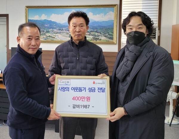 갈비 1987 황성환 사장은 “직원들이 팁으로 받은 금액을 모아 이동면민을 위해 기탁하기로 정했다 지역사회를 위해 많은 나눔을 실천해 지역사회와 함께 성장하도록 노력하고 사회적 책임 이행에 최선을 다하겠다”고 말했다.