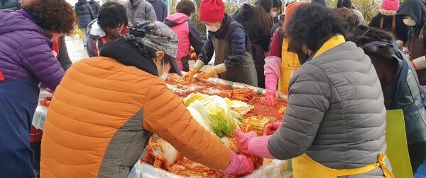 준비한 김장김치 10kg 160상자는 명예사회복지공무원으로 활동하고 있는 24개 통장들과 관교여자중학교를 통해 홀몸노인 가구, 저소득가구 등 135세대와 경로당 11개소에 전달했다.