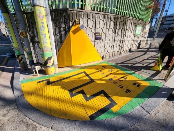 금천구는 금동초등학교, 동광초등학교, 백산초등학교 3개교에 옐로카펫을 신규 설치하고 색이 바래 시인성이 저하된 6개 학교 인근 옐로카펫을 보수했다.