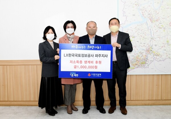 한국국토정보공사 파주지사는 매년 다양한 사회공헌사업을 실시하고 있으며 꾸준한 성금 기탁과 함께 봉사활동을 펼치고 있다.