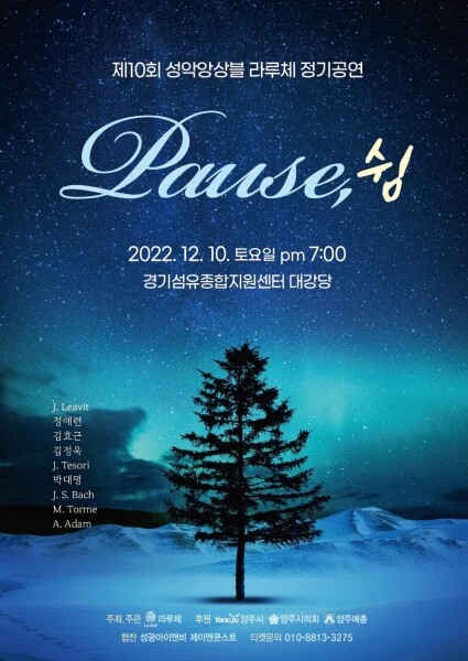 이번 연주회는 독일어 ‘파우제’라는 주제로 John Leavitt의 Missa Festiva, 한국 가곡, 대중가요, 캐럴 메들리 등 다양한 곡들로 송년의 분위기를 장식할 예정이다.