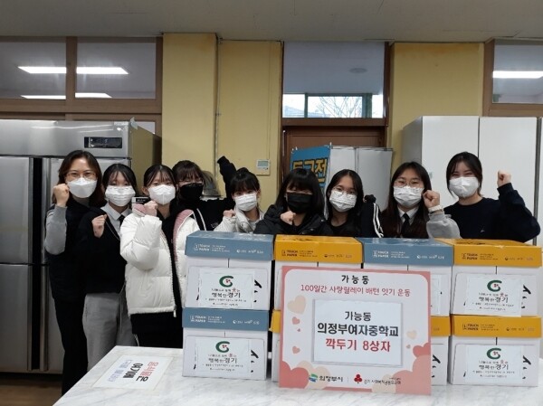 최경섭 가능동장은 “추운 날씨에도 불구하고 김치 나눔 봉사에 동참해주신 의정부여자중학교 학생들에게 감사드리고 지역을 위한 많은 도움과 관심을 부탁드린다”며 “학생들의 사랑과 정성이 담긴 김치와 깍두기를 주변 어려운 이웃들에게 잘 전달하겠다”고 말했다.