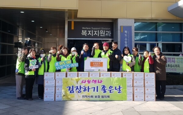 화도읍 지역사회보장협의체 황정순 위원장은 “겨울이 본격적으로 시작되며 더욱 힘든 시기를 보내고 있을 이웃들에게 김장김치가 조금이나마 도움이 됐으면 좋겠다”며 “우리 이웃들이 따뜻한 관심을 느낄 수 있도록 앞으로도 꾸준히 이웃 사랑을 실천하겠다”고 밝혔다.