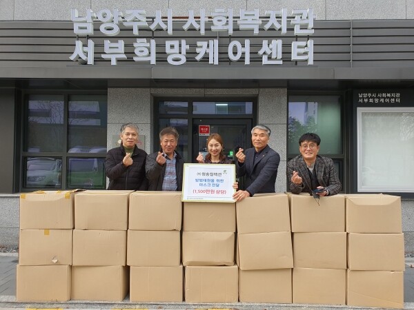 주식회사 청송콜렉션 나진남 대표는 “이번 마스크 기부를 시작으로 성탄절에는 지역 아동을 위한 후원을 계획하고 있다”며 “앞으로도 다양한 활동을 통해 지역 사회에 보탬이 될 수 있도록 노력하겠다”고 밝혔다.