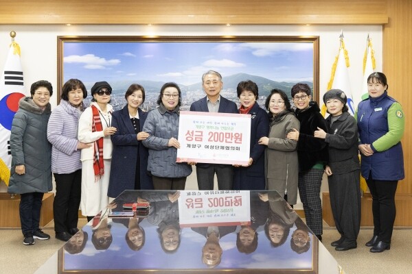 이에 윤환 계양구청장은 “어려운 시기에 큰 나눔을 실천해 주신 계양구여성단체협의회에 진심으로 감사드리며 추운 겨울 어려움을 겪는 이웃이 없도록 세심히 살펴 따뜻하게 쓰일 수 있도록 하겠다”고 전했다.