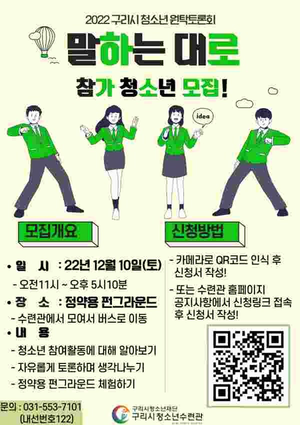 구리시청소년재단 백경현 이사장은 “청소년들이 사회참여에 대해 알아가고 다양한 경험을 할 수 있는 프로그램인 만큼 많은 관심과 참여를 바란다”고 전했다.