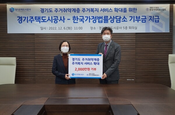 GH 전형수 부사장은 “양 기관의 업무협약과 기부금을 통해 경기도민의 주거복지 향상과 더불어 취약계층의 법률구조 서비스도 강화하는 데 최선을 다할 것”이라고 밝혔다.