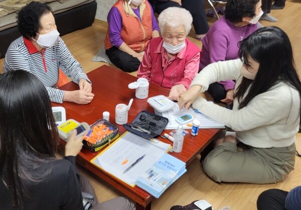 방문간호사도 경로당에 함께 방문해 건강관리증진 프로그램을 운영한다.