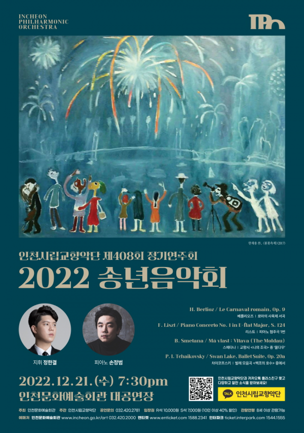 ‘2022 송년음악회’ 포스터는 화려한 색감의 유화와 드로잉 작업으로 낙관적이고 호기로운 삶의 풍경을 표현한 한재용 작가의 ‘불꽃축제’를 메인 이미지로 삼았다.