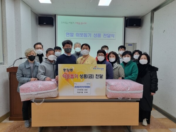 중앙동 행정민원팀장은 “모두가 어려운 시기에 자발적으로 이웃돕기 성금 모금에 동참해 주신 위원님들께 감사하다”며 “추운 겨울, 경제적으로 어려움을 겪고 있는 이웃들에게 작지만 따뜻한 기운이 전달되길 바란다”고 전했다.
