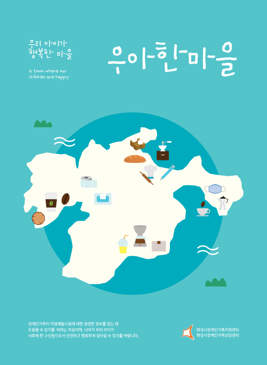 책에는 화성시 관내 장애인직업재활시설로 화성시아르딤복지관 화성시아름장애인보호작업장 양감점·동탄점 화성시동탄아르딤복지관 화성시드림장애인직업적응훈련센터 행복한일터 보스코직업적응훈련센터 와~우리장애인보호작업장 더아름다운세상 총 9곳이 담겼다.