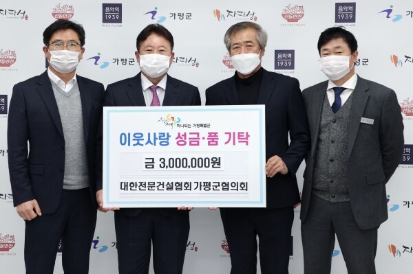 이날 전달식에 참석한 대한전문건설협회 가평군협의회 김용문 회장은 “부쩍 쌀쌀해진 날씨 가운데 따뜻한 이웃의 정을 나눌 수 있어 보람된다”며 “앞으로도 지속적이고 진정성 있는 사회공헌 활동을 꾸준히 이어감으로써 지역사회와 상생하는 모습을 보여드릴 것”이라고 소감을 밝혔다.