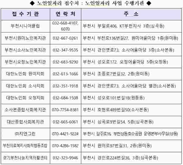 조용익 부천시장은 “근로능력이 있는 어르신에게 적합한 일자리 활동을 지원함으로써 어르신들이 활기차고 안정된 노후생활을 보장받을 수 있도록 최선을 다하겠다”고 말했다.
