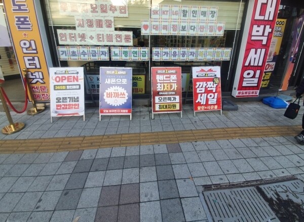 입간판은 관련 조례에 따라 목재, 아크릴의 재료를 사용해야 하며 높이 1.2m 이하, 한면 면적이 0.6㎡ 이하, 바닥면은 가로 50cm × 세로 70cm 이하의 규격을 준수해 제작하고 구청에 신고해야 하는 광고물이다.