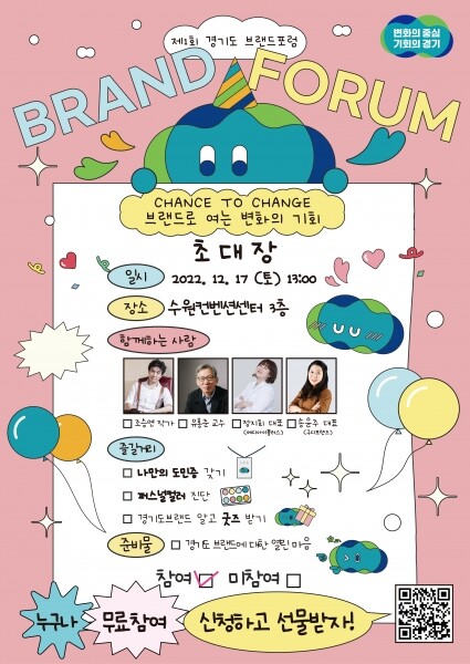 포럼에 참여를 희망하는 도민은 경기도 브랜드 포럼 공식 누리집을 통해 사전 신청할 수 있으며 현장에서도 누구나 자유롭게 참여할 수 있다.