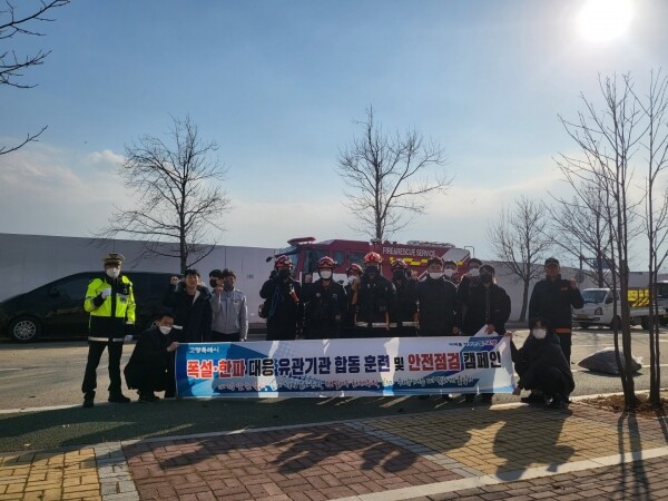 훈련은 차량이 정체된 상황에서 경찰관의 도로 통제, 소방서의 구조 활동, 고양시의 제설 차량 운용 등 각 기관이 협업하는 방식으로 진행됐다.