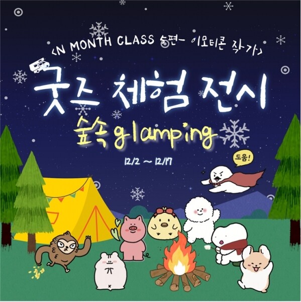 ‘숲속 글램핑’에서는 밍돌이의 ‘옹졸이’ 새하랑의 ‘도움무새’ 망챙이의 ‘행운의 돼지’ 호그보이의 ‘호늘보리’ 하지의 ‘새토’ 리버의 ‘구름이’ 찌구의 ‘헬찌’ 진이랑의 ‘벼리’가 전시된다.