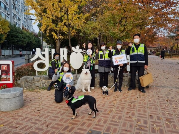 강동구는 반려견 순찰대가 지난 11월부터 월 2~3회 정기적으로 금연구역 순찰을 돌며 금연 계도 활동과 함께 홍보 캠페인을 이어오고 있다고 9일 밝혔다.