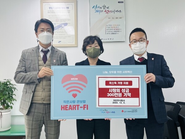 오승택 가보주식회사 전무는 “경제적으로 어려움을 겪고 계시는 이웃들에게 조금이나마 보탬이 되길 바라며 앞으로도 우리 주변의 소외이웃을 위한 나눔을 실천해 나가겠다”고 말했다.
