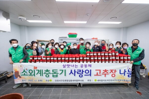 김종수 오류왕길동 새마을협의회장은 “정성껏 만든 고추장이 온정과 함께 배달돼 우리 이웃들이 따뜻한 겨울을 보내길 바란다”고 전했다.