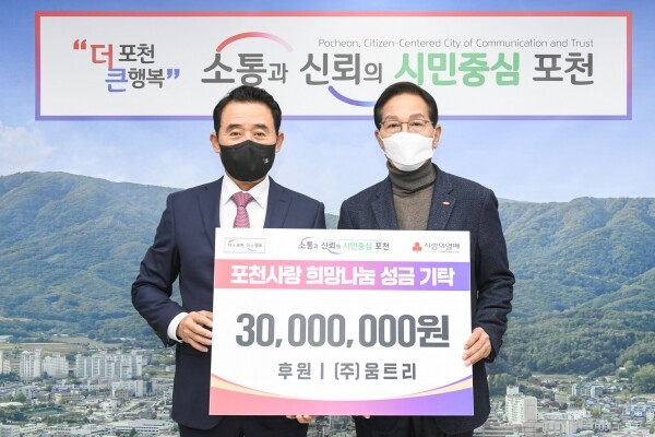 ㈜움트리, 포천시 이웃돕기 성금 3000만원 기탁