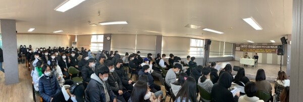 지평중, 고등학교 학생 120여명과 함께한 이날 행사는 김민영 작가의 사회로 김호연 작가와의 대담과 가수 조다빈과 이재안의 노래 공연, 참석한 학생들과의 질의응답 순으로 약 2시간여 동안 진행됐다.