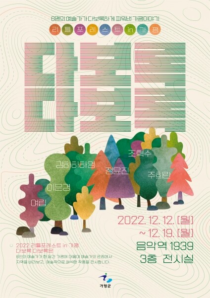 12월 12일부터 시작되는 [리틀포레스트 in 가평 다보록다보록] 전시는 음악역 1939 3층 전시실에서 진행된다.