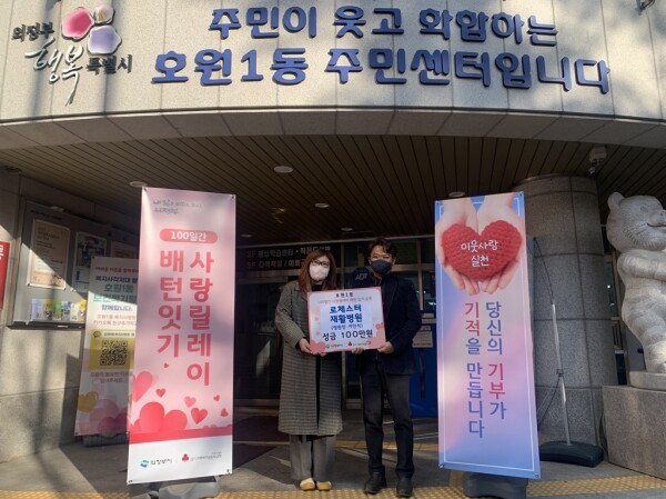 [뉴스서울] 의정부시 호원1동은 12월 7일 로체스터재활병원으로부터 성금 100만원을 기부받았다고 밝혔다.