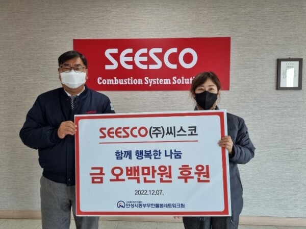 ㈜씨스코는 산업용 연소설비 메이커로 명성을 쌓아온 연소설비 전문기업으로 2013년부터 지금까지 안성시동부무한돌봄네트워크팀에 꾸준한 기부를 실천해 왔다.