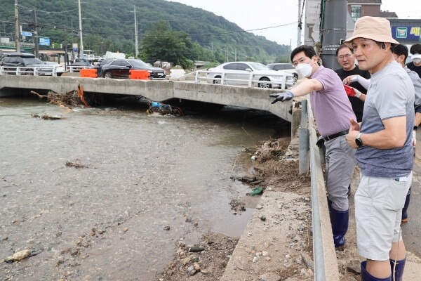 이 시장은 민선 8기 취임 첫날 취임식을 생략하고 집중호우로 수해를 입은 수지구 동천동 현장을 방문해 피해 상황을 살피고 복구를 지휘했다.