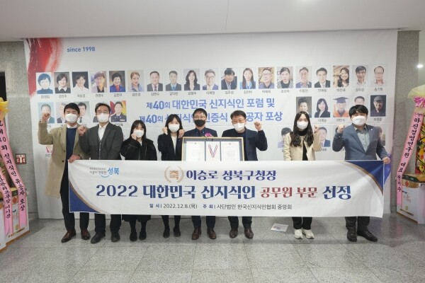 이승로 구청장은 주민과 행정이 지역문제를 함께 풀어나가는 주민중심의 행정 시스템을 구축·실현한 공로가 인정돼 공무원 분야 신지식인으로 선정됐다.
