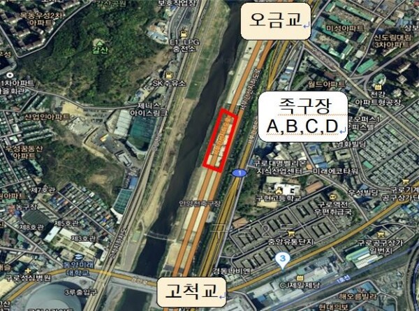 안양천 우안 고척교부터 오금교 구간에 위치한 족구장 A~D 4곳은 마사토로 조성돼 있어 먼지 날림, 안전사고 등에 취약했다.
