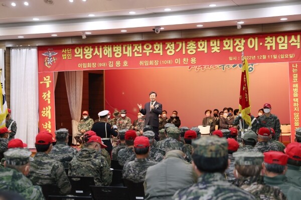 의왕시 해병대전우회를 이끌 제10대 이찬용 신임회장은 취임사에서 “투철한 해병대 정신으로 선후배들과 합심해 지역사회 발전과 나눔 봉사 활동에 솔선수범하는 해병대전우회가 되도록 최선을 다하겠다”고 포부를 밝혔다.