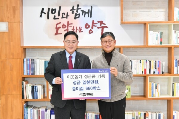 강수현 양주시장은 “지역사회 발전과 사회적 가치 실현을 위해 매년 잊지 않고 기부해주시는 ㈜컵앤팩에 감사드린다”며 “어려운 이웃들이 넉넉한 인심을 느끼며 희망을 잃지 않는 연말이 될 수 있도록 성금과 성품을 잘 전달하겠다”고 말했다.