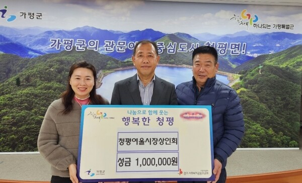 지병록 청평면장은 “주변의 소외된 이웃에게 도움의 손길을 건네는 따뜻한 마음에 감사하다 매년 도움을 주시는 청평 여울시장상인회 분들에게 감사드리고 성금은 도움이 필요한 곳에 잘 전달하겠다”고 전했다.