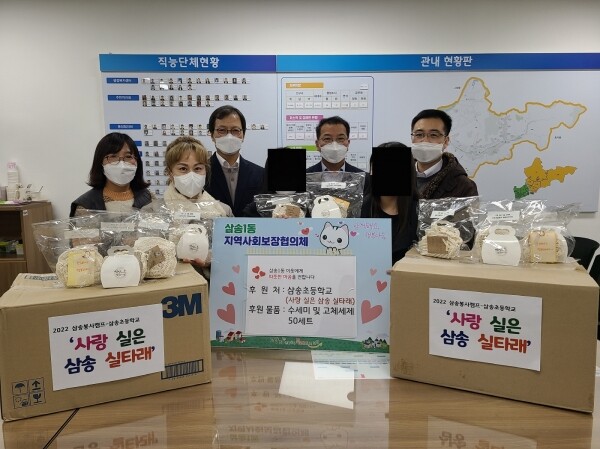 홍길표 삼송1동장은 “학교 공부를 하면서도 주변을 살피고 돌아볼 줄 아는 친구들이 있어 따뜻한 겨울이 될 것 같다 학생들이 수세미를 완성할 수 있게 지도해 주신 학부모 여러분과 학교 관계자분들께 감사의 말씀 전한다”고 전했다.