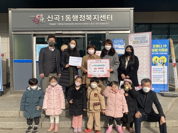 이날 기부한 사랑의 성금은 원아 및 학부모의 협조로 진행된 ‘아나바다’바자회를 통해 마련된 것으로 어린이집 관계자 역시 기부에 동참하며 나눔의 의미를 더욱 빛내었으며 당일 6명의 아이들이 신곡1동행정복지센터에 방문해 의미 있는 성금을 직접 전달했다.