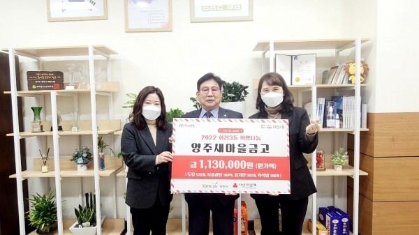 윤향섭 이사장은 “연말을 맞아 이웃들과 행복을 나누고자 기부에 참여하게 됐다”며 “앞으로도 지역을 위해 꾸준한 나눔을 실천하는 양주새마을금고가 되겠다”고 전했다.