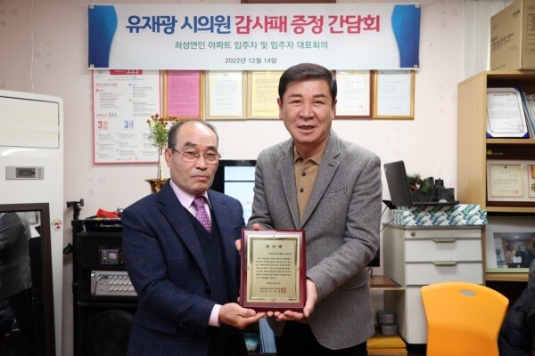 한편 유 의원은 이날 감사패 수여식에서도 주민 민원을 적극 수렴하고 해결 방안을 논의하는 등 민원 해결사로서의 역할을 톡톡히 했다.