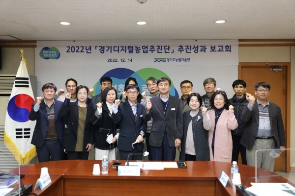 이번 보고회는 농업촌진흥사업 전 분야의 디지털농업 촉진을 위한 자리로 추진단장인 연구개발국장을 비롯한 경기도농업기술원 연구개발·기술보급국 과장, 연구소장 등이 참석해 2022년 추진성과를 점검하고 2023년 추진방향을 모색하기 위해 마련됐다.