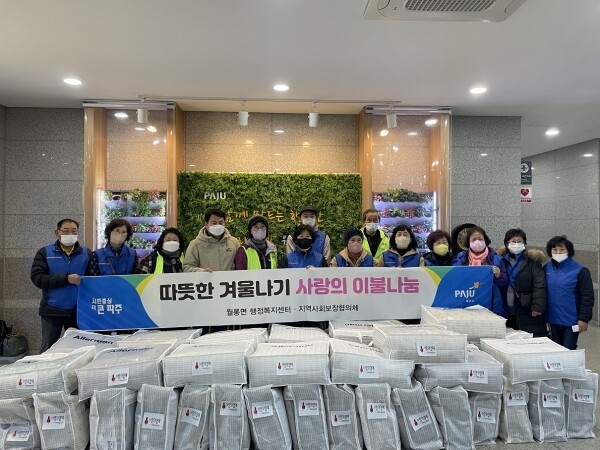 김은숙 월롱면장은 “이번 사업을 통해 동절기를 맞아 소외감을 느낄 수 있는 어르신들께 위로와 힘이 되길 바라며 이웃사랑 나눔을 몸소 실천해주신 지역사회보장협의체 위원님들께 감사드린다”고 전했다.